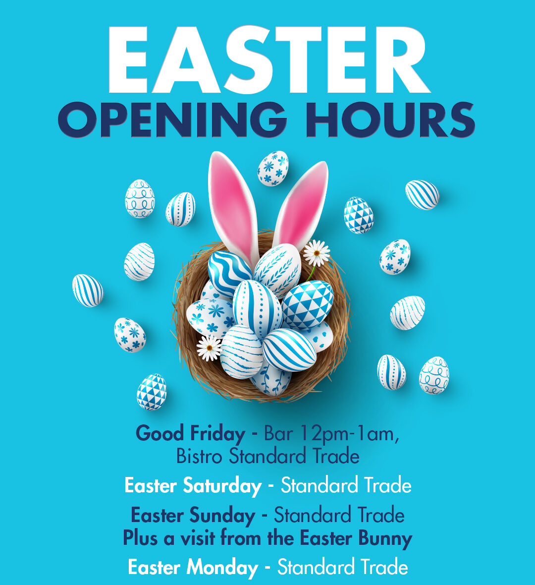 Easter Long Weekend April 3 - April 6 We are open every day this Easter long weekend! Join us for the best hospitality you've come to know and love and pop in Sunday for a visit from the Easter Bunny!